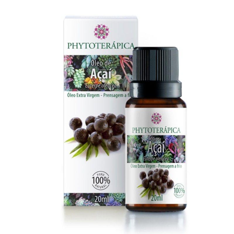 Óleo Vegetal de Açaí Extra Virgem Phytoterápica é extraído por prensagem a frio. É rico em ômega 9, além de conter ômega 6, ácido palmítico, vitaminas A, D e E, e fitoesteróis que previnem os sinais de envelhecimento e processos inflamatórios.